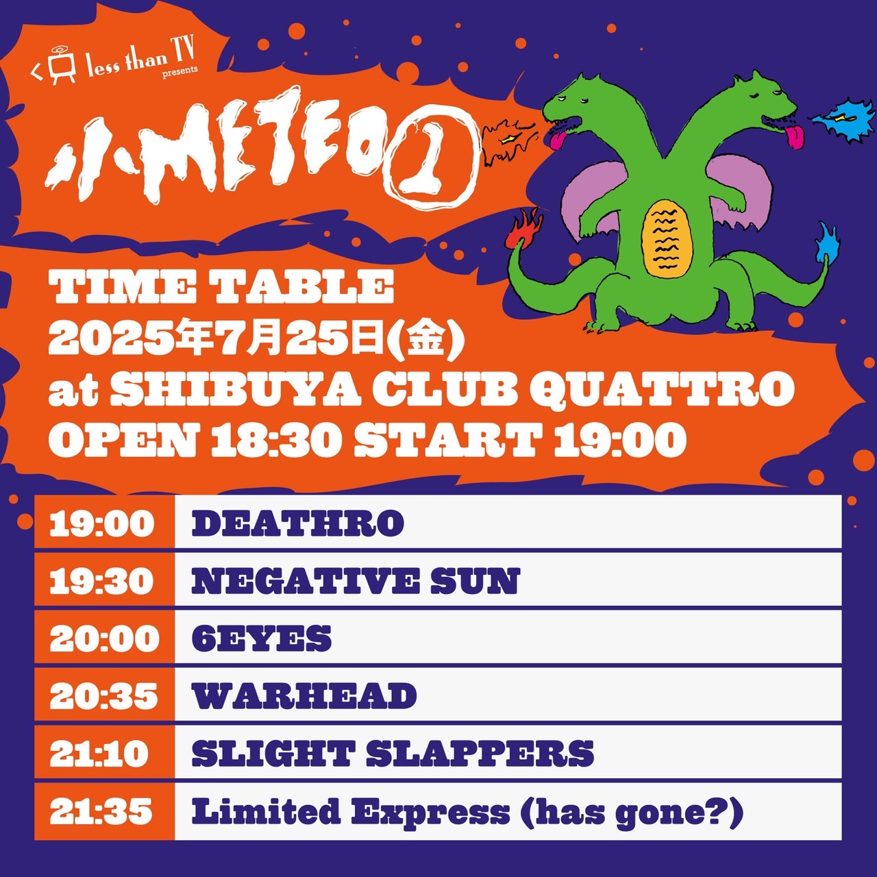 7月25日(金)『小METEO@』のタイムテーブルが公開されました。クアトロ史上初、フロア2ステージ制でのノンストップライブです!